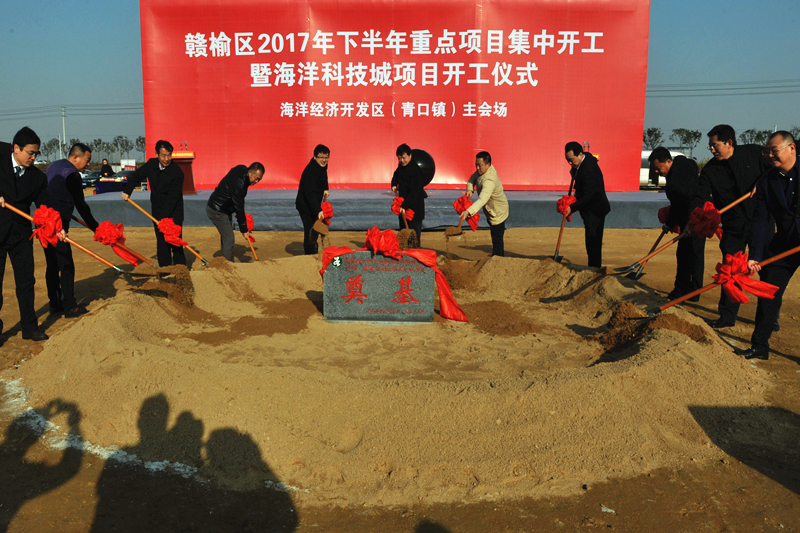 25日上午,2017年下半年重点项目集中开工暨海洋科技城项目启动仪式举行。在海洋经济开发区(青口镇)主会场,区委书记孙爱华与中国北大荒产业集团控股有限公司董事局主席江建军共同为海洋科技城项目开工奠基按下启动球。区长唐光普主持启动仪式;区人大常委会主任、党组书记孙海,政协主席、党组书记刘洪卫,副区长欧伟、孙培元等出席。